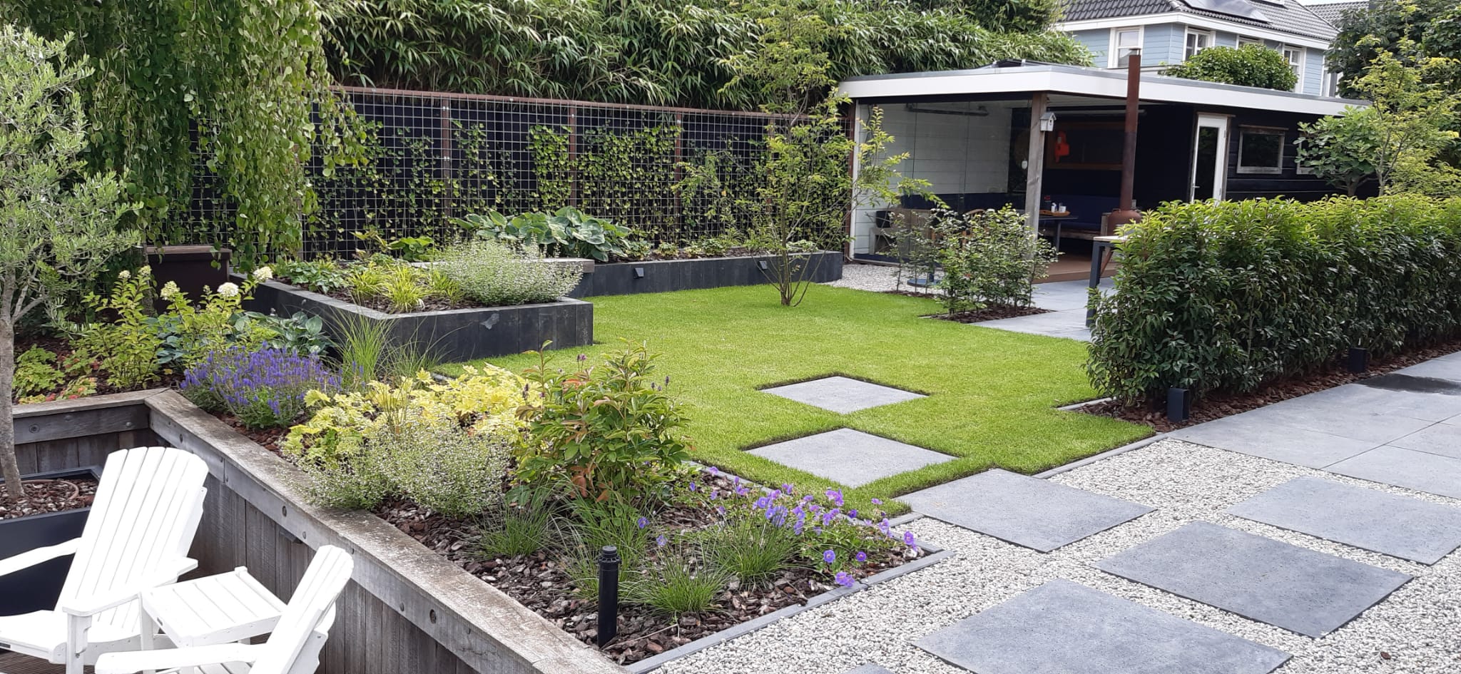 Na het ontwerp van de tuin komt het uiteindelijke resultaat, de tuin.